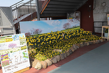 またスイセンガーデン付近では、パネル展示やチラシ配布を行い、国営備北丘陵公園にて開催される「日本最大級規模!スイセンガーデン」や「備北花ピクニック」をご紹介いたします。