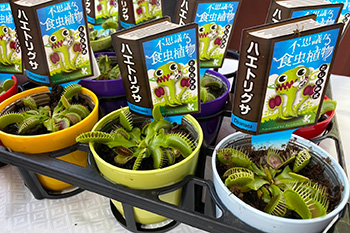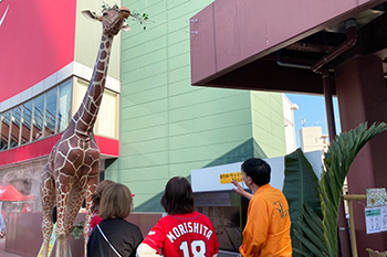 ライト側コンコース どうぶつ広場では、今年オブジェとして登場しているキリンの「はぐみ」の解説コーナーや、バラ・食虫植物等の展示と解説、カープとコラボしたオリジナルグッズの販売など、ついつい足を止めたくなるような気になるブースがたくさん!