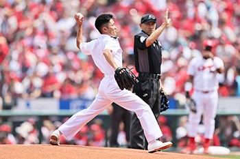 試合前は、海上自衛隊 幹部候補生学校 小林 慶次郎 海曹長による始球式が行われました。大きく振りかぶった投球で見事ストライク!スタンドから温かい拍手をいただきました。