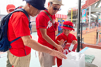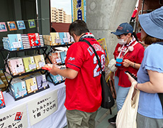 レフト側コンコース レフト広場では、南極観測船「しらせ」が運んできた南極の氷の展示や制服の試着体験、カープとコラボしたオリジナルのクリアファイルの配布も行われました。