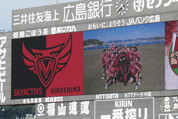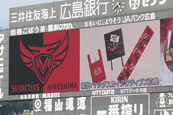 大型ビジョンでは、チームの紹介と、マツダスカイアクティブズ広島の「オリジナルグッズセット」の抽選会が行われました。