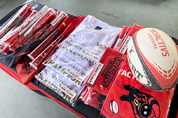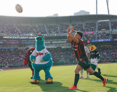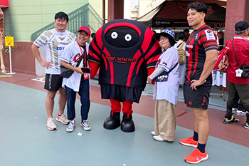 ライト側コンコース どうぶつ広場では、チームのグッズ販売や「ウィズリー」・選手たちとの記念撮影会が行われました。また、チームのSNSをフォローしていただいた方にはノベルティグッズをプレゼントし、ラグビーの楽しさを伝えました。