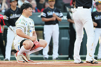 その後、両選手は始球式にも登板!芦田選手が投げた球は見事大竹選手のグローブに収まり、スタンドから大きな拍手が寄せられました。