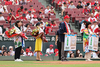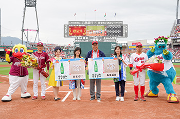 6月22日(日)楽天戦は、由布市役所、湯布院カープ事業団、佐伯市役所、大分県企画振興部の皆さまによる「行きどき!食べどき!浸かりどき♨おんせん県おおいた」を開催しました。