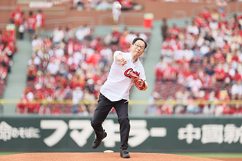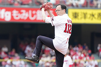 始球式には、大分県知事 佐藤樹一郎様が登板!力強い投球にスタンドから大歓声が沸きました。