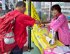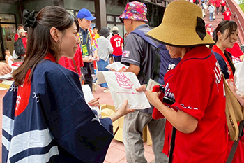 各ゲートでは、「カープ応援うちわ」と「観光パンフレット」が配布されました。