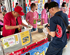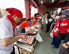 「豊後牛カレー」や「若鶏 炭火焼」等、人気の商品はなんと試合前に完売!入浴剤等が当たる「おんせんくじ」も実施し、お立ち寄りいただいた多くの皆さんに大分県の魅力を知っていただきました。