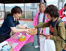 大型ビジョンでは、各地域のPR映像の放映と、大分県より「おんせん県おおいた」グッズ詰め合わせセット、由布市・佐伯市より「由布院温泉ペア宿泊補助券」と「佐伯伊勢えびランチペアお食事券」の抽選会が行われました。