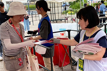 各ゲートでは、「カープ応援うちわ」が配布されました。