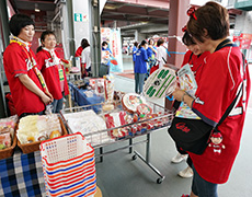 ライト側コンコース どうぶつ広場、レフト側コンコース レフト広場では、今年広島で行われるインターハイのPRや障碍者福祉施設「ふれ愛プラザ」で作られた商品の販売、人権・災害に関するパンフレットの配布等、県市での様々な取り組みの展示や広報活動などが行われました。