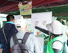大型ビジョンでは、県市での様々な取り組みや、来場者プレゼントなどが紹介されました。
