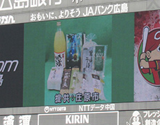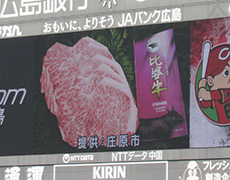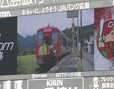 大型ビジョンでは、「比婆牛」と「庄原特産品セット」の抽選会や、庄原市を走る芸備線の紹介などが行われました。