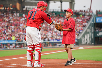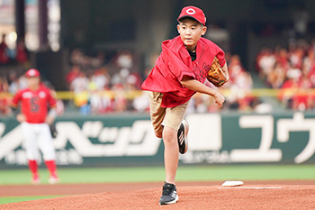 始球式には、今回のイベントに参加している森川隼翔くんが登場!緊張している様子でしたが、投げた球は真っすぐキャッチャーの元に届き見事なストライク!観客の皆さまから大きな歓声と拍手が送られました!