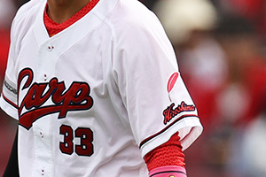 ・監督、コーチ、選手がユニフォーム袖に「赤い羽根ワッペン」を着用