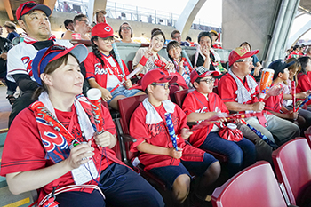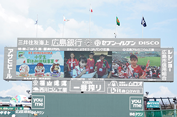 試合中はもちろん全力で応援!すっかり仲良くなった参加者同士、試合展開に一喜一憂しながら観戦しました。また、大型ビジョンでのご紹介時には、カメラに向かってたくさん手を振ってアピールしました。