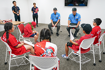 今回、こども達の質問にお答えいただいたのは、須山審判員と岩下審判員のお二方です。