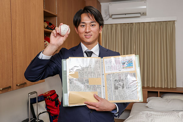 - A.甲子園のホームランボールと、おじいちゃんが趣味で自分の野球雑誌だったり成績を高校時代からつけているファイルがあるんですけど、それを持ってきました。