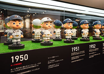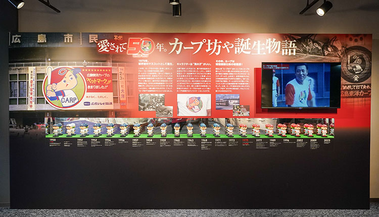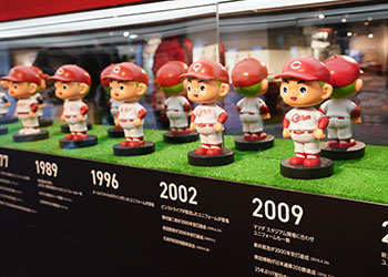 カープ坊やの誕生秘話や、歴代ユニフォームを身にまとったカープ坊や人形など、ここでしか見ることのできない特別な展示となっています。また、カープ坊や誕生当時の貴重な映像もご覧いただけます。