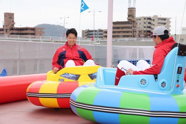 韮澤選手と玉村選手がバンパーカーに乗ってくれました!