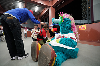 その他にもスラィリーとセンター広場のアミューズメントパークで遊んだり、ご来場のファンの皆さんと写真撮影したりとグラウンド内外で試合を盛り上げてくれました!