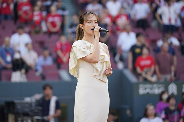 美しくパワフルな魅力あふれる歌声が球場全体に響き渡り、スタンドのお客様から大きな拍手が送られました!!