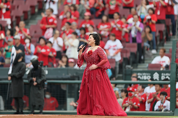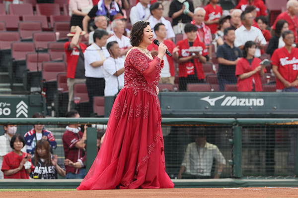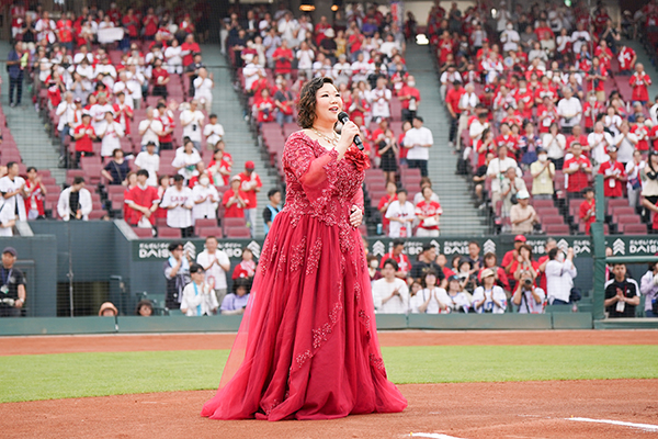 6月20日(金)対 楽天戦の試合前に行われた国歌斉唱は、広島県出身で広島プロミシングコンサートや新進演奏家育成プロジェクトオーケストラ・シリーズでの広島交響楽団との共演や、戦後80年を憶えてドイツ国内でのコンサート開催のほか、オペラ出演、さまざまな宗教曲やベートーヴェン「交響曲第9番」のソリストとしてもご活躍中の 佐々木 有紀 さん に務めていただきました。