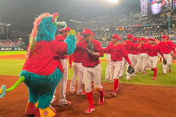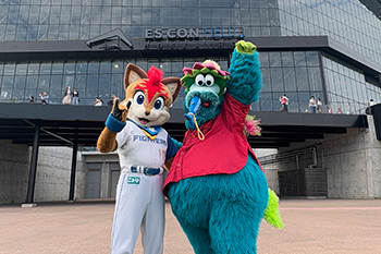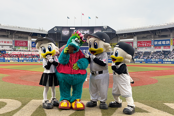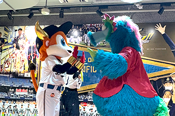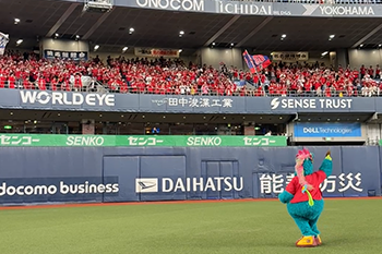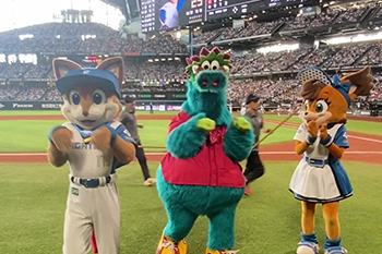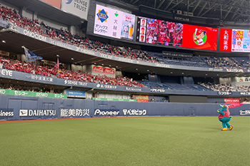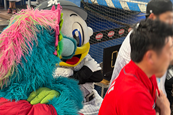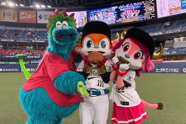 日本生命セ・パ交流戦のビジターでのマスコット交流は総移動距離約3000kmの大冒険!スラィリーも応援よく頑張りました!