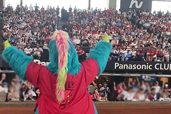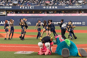 グラウンドでは、ベルちゃんと一緒にBsGravityさんのパフォーマンスを楽しんだり、京セラドーム大阪ではおなじみの「ハリセンタイム」に参加したり…