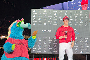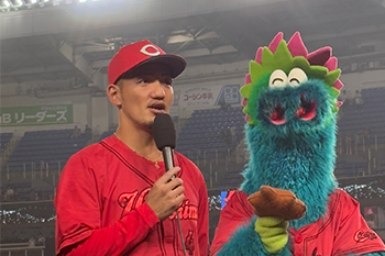 交流初日は延長12回、4時間56分にわたる激闘を制しカープの勝利!矢野選手のヒーローインタビューを嬉しそうに聞いていました!