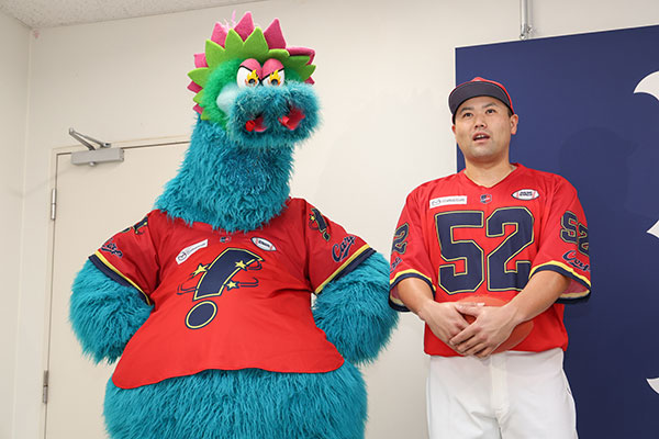 栗林投手:4年ぶりのイベントのユニフォームで、球団のみなさんが盛り上がりの機会を作ってくれているので、まずはチームの勝利でファンの皆さんと一緒に、あとは自分たちがしっかりアメフトの選手のように力強くパフォーマンスを出すだけなので、みんなで勝利を喜び合えるように頑張りたいなと思います。