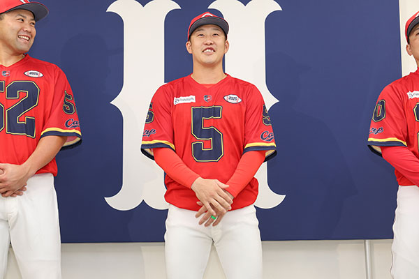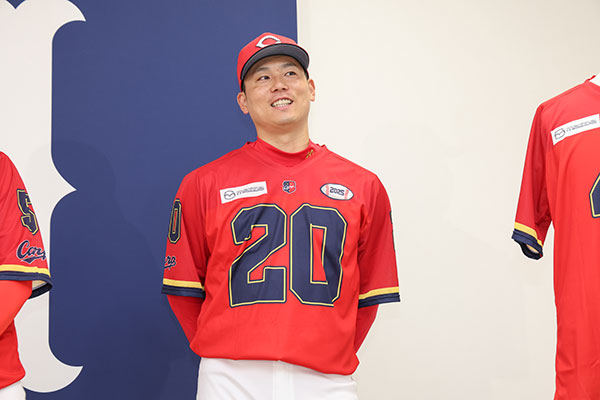 本日、マツダスタジアムにてお披露目記者会見を行いました。