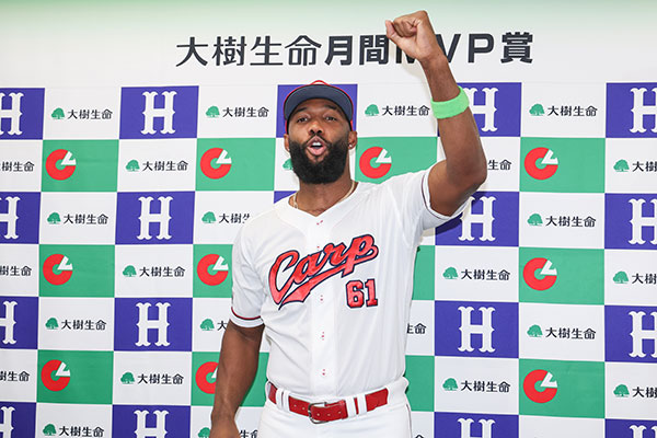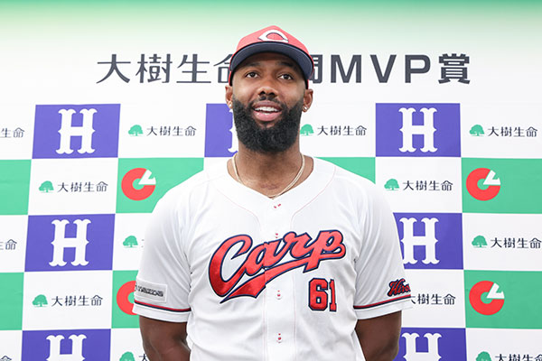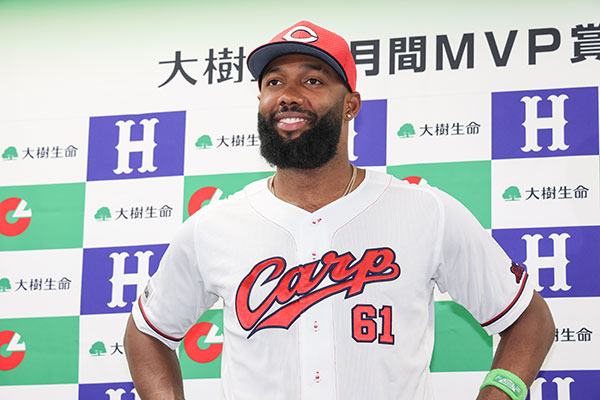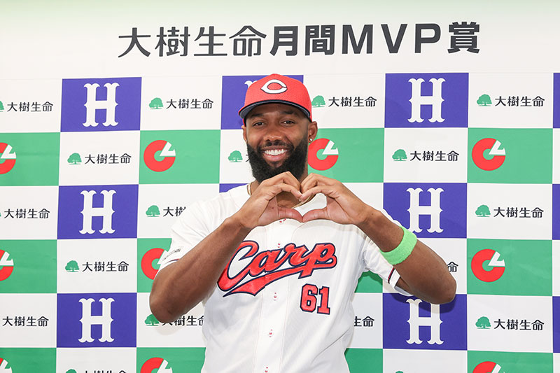 ファビアン選手は、全22試合に先発出場し、リーグトップの15得点、31安打(トップタイ)、17打点(2位)、打率.348(3位)と見事な成績を残した。6月は22試合中11試合でマルチ安打を記録するなど安打を量産。交流戦負け越し2で迎えた最後の2試合では連続猛打賞で連勝に導き、チームの交流戦5割キープに大きく貢献。勢いそのままにリーグ戦再開後の27日からの中日3連戦でもマルチ安打を放ち、6月終了時点で打率リーグトップとなった。 打者部門でのカープからの受賞は昨年5月度受賞の小園海斗選手以来、広島東洋の外国人打者での受賞は2014年9月度のR.ロサリオ選手以来となる。 |