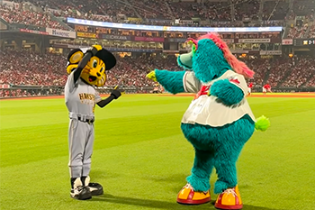 ビジターでのマスコット交流は、8月8日(金)・9日(土)にバンテリンドーム ナゴヤに遠征予定ですのでお楽しみに!