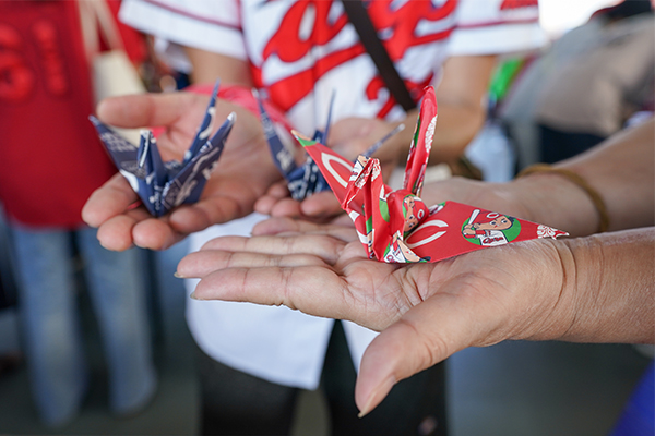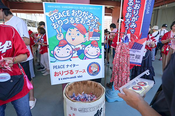 浄土真宗本願寺派安芸教区子ども・若者ご縁づくり推進委員会が製作している、カープ坊や・スラィリーなどがデザインされた「PEACE おりがみ」を使って、折り鶴をつくることができるコーナーや、カープの選手がつくった折り鶴の展示などを行います。