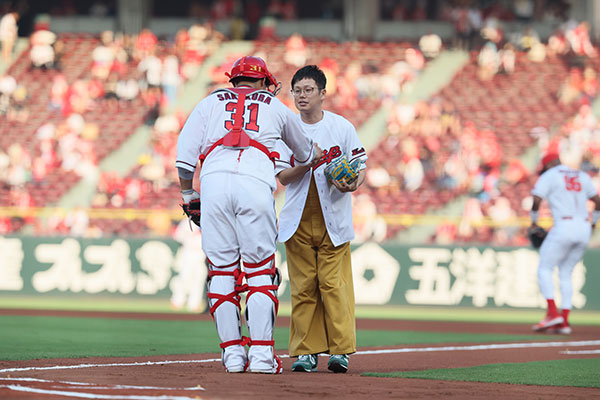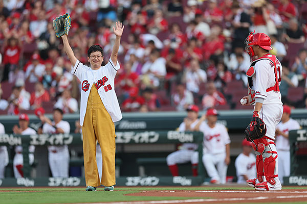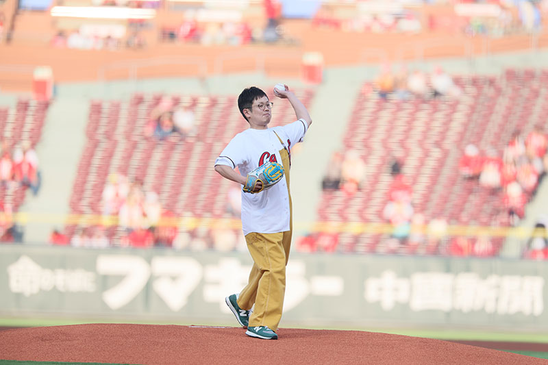 7月15日(火)対 DeNA戦の試合前に行われた始球式は、広島県在住で、笑いを交えた子育て情報を発信するSNSが総フォロワー数200万人を超え、テレビ出演などでもご活躍のほか、今年4月に発売した絵本「はぶらしロケット」が話題となり、7月17日には2冊目の絵本「おこさまレストラン」の発売を予定されているなどご活躍中のタレント/子育てインフルエンサー 木下 ゆーきさん に務めていただきました。