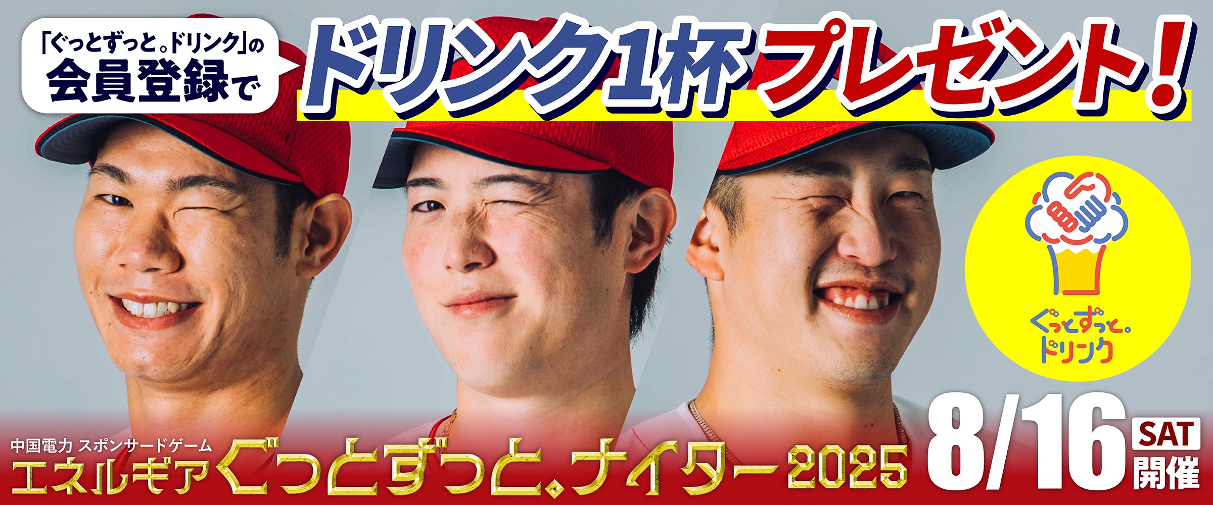 8月16日(土)対ヤクルト戦にて開催される中国電力スポンサードゲームに合わせ、マツダ スタジアムにて「ぐっとずっと。ドリンク」のクーポンをご提示いただいた方に、ドリンク無料引換券とカープコラボクリアファイルをプレゼントする『「ぐっとずっと。ドリンク」応援キャンペーン』を実施いたします!