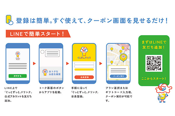 当日現地にて会員登録された方も対象となりますが、あらかじめ会員登録をしていただいている方は当日速やかに特典をお受け取りいただけます!この機会にぜひ「ぐっとずっと。ドリンク」にご登録ください。
