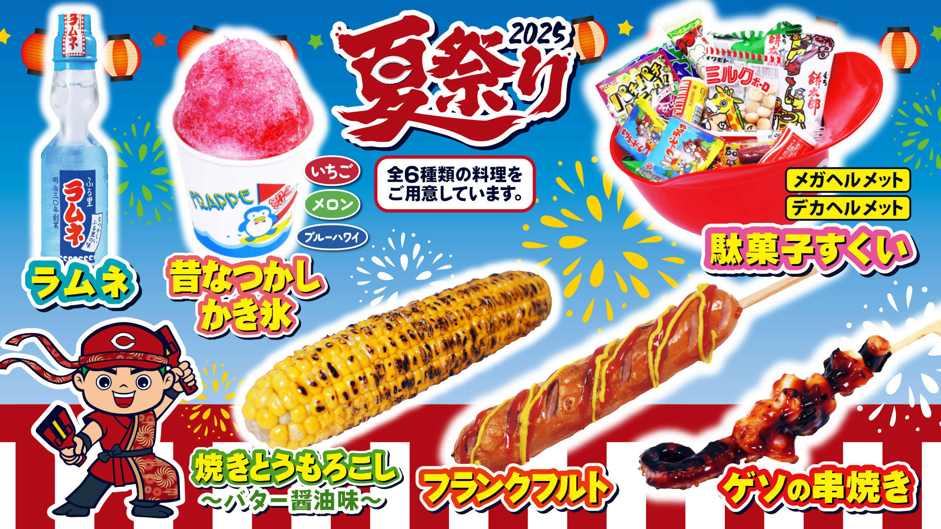 マツダスタジアムで実施する”夏祭り2025”にて、夏祭り限定グルメを販売いたします!