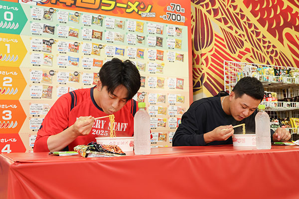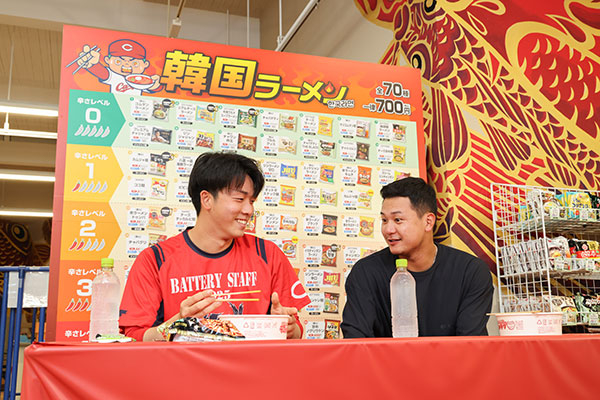 森投手・常廣投手に韓国ラーメンを作って食べていただきました!