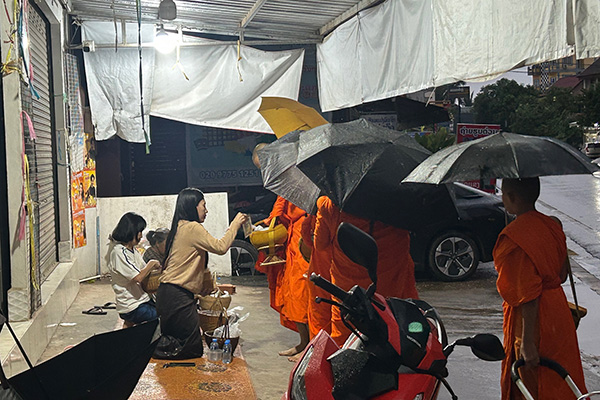 早朝に街中を回る僧侶に、信者が食品などを渡すことで功徳を積むという「托鉢」が行われていたり、平日の日中でも寺院に参拝に訪れる方が多くいらっしゃったりと、ラオスの方々の生活に仏教が根付いているのを感じました。