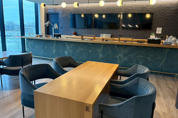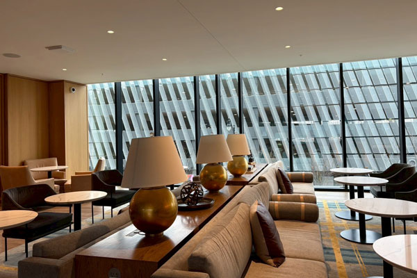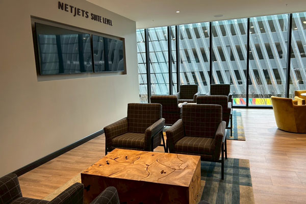 スタジアムの外観は黒を基調としたスタイリッシュなデザインで、収容人数は20,139人。全24室あるスイートルームの共用スペースにはおしゃれな家具が揃っており、まるで高級ホテルのロビーのようで優雅で洗練された雰囲気が漂っておりました。
