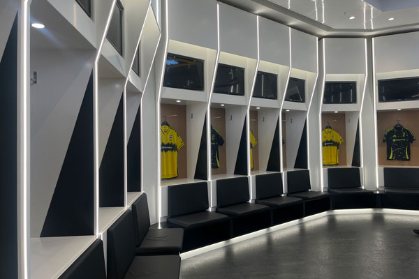 この他、チームロゴを天井に大胆にデザインした選手ロッカーでもイベント等が行われるそうで、単なるサッカースタジアムだけでなく、公共の場としても使用されていることが分かりました。