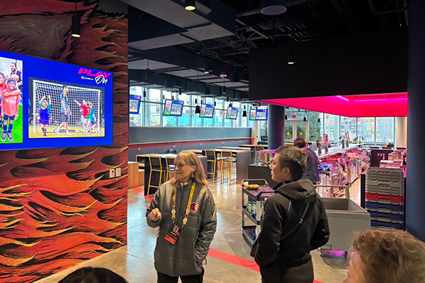 公共交通機関のアクセスがよく、コンコース内の飲食店は地元のレストランによる経営で、セントルイスの食を楽しめる点やペットを同伴できる座席が設けられているなど、サッカー観戦以外もリラックスして楽しめるのが良いと感じました。また、最新技術を駆使したスタジアムで、待ち時間の解消や手軽にショッピングができるなど、より快適な時間を過ごせる場所としても提供されていました。